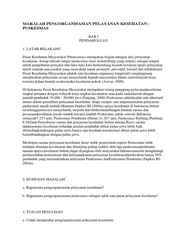 Makalah pelayanan kesehatan di puskesmas. Pelayanan kesehatan di Puskesmas Desa Gunawan dilakukan atau dilaksanakan melalui. Berbicara masalah mutu pelayanan kesehatan dasar di Puskesmas terkandung makna bahwa Puskesmas berkewajiban menjaga bahkan meningkatkan mutu pelayanan kesehatan dasar di Puskesmas. 19 tindakan preventif apalagi promotif.